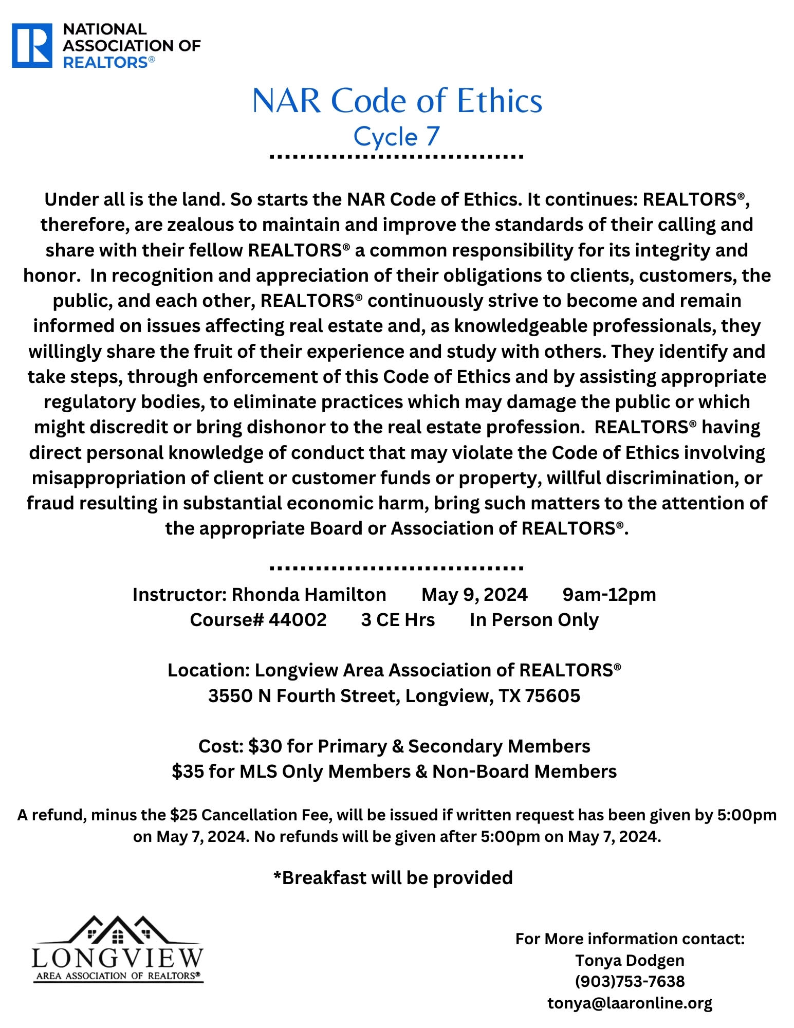 In Person Only at the LAAR Office, 3550 N Fourth Street, Longview, TX 75605
